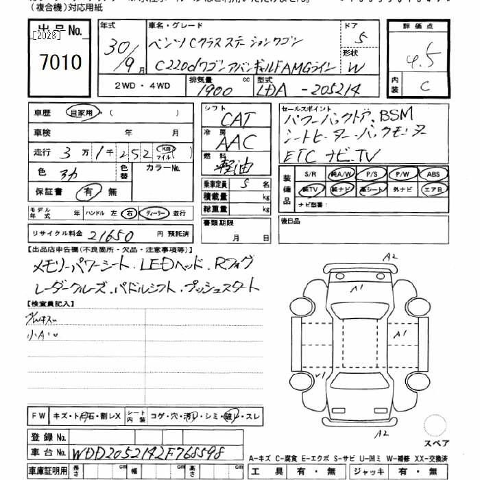 MERCEDES BENZ C CLASS STATION WAGON 2018 г., лот № 7010