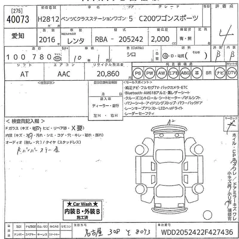 MERCEDES BENZ C CLASS STATION WAGON 2016 г., лот № 40073