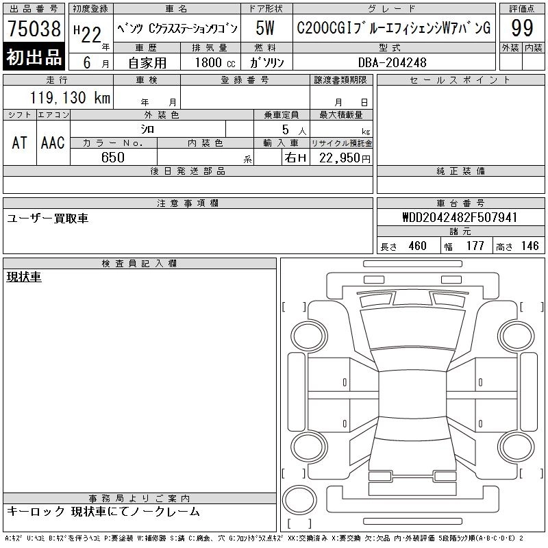 MERCEDES BENZ C CLASS STATION WAGON 2010 г., лот № 75038