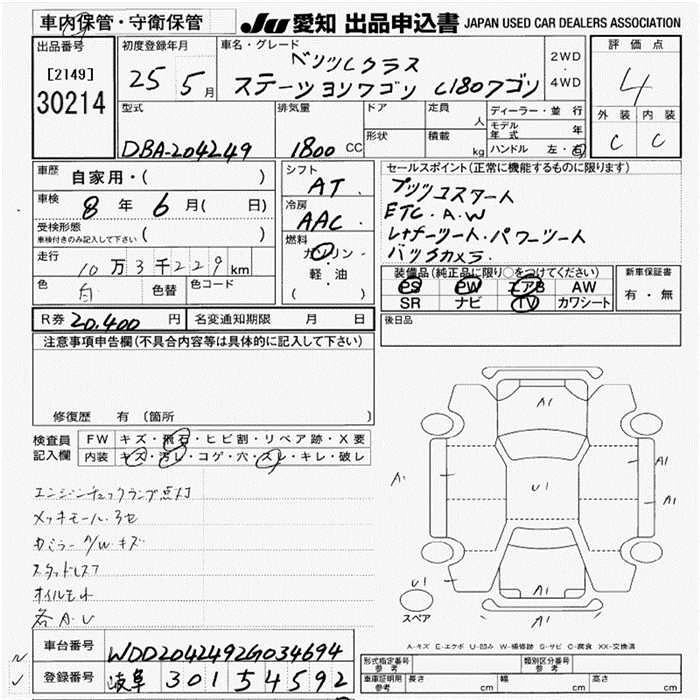 MERCEDES BENZ C CLASS STATION WAGON 2013 г., лот № 30214