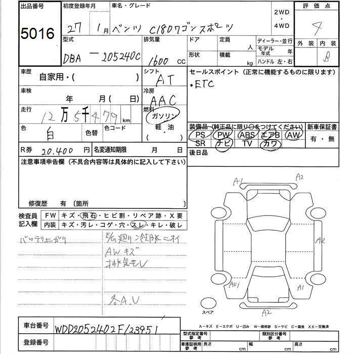 MERCEDES BENZ C CLASS STATION WAGON 2015 г., лот № 5016