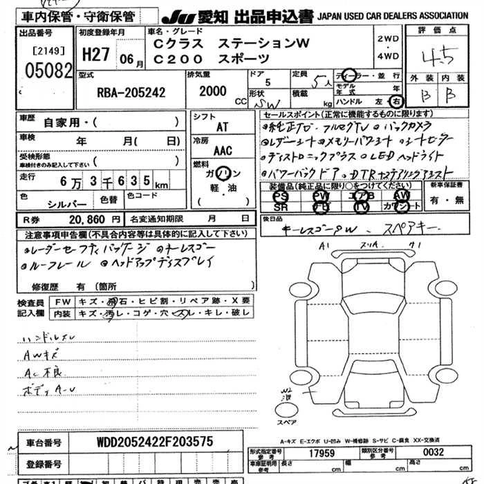 MERCEDES BENZ C CLASS STATION WAGON 2015 г., лот № 5082