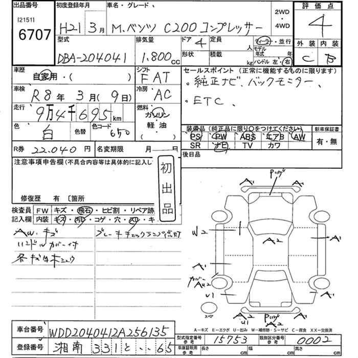 MERCEDES BENZ C CLASS 2009 г., лот № 6707