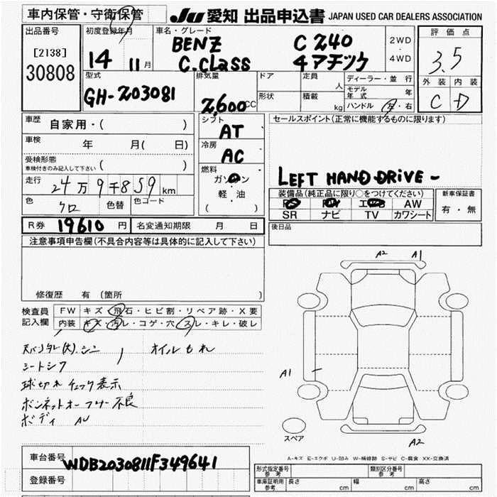 MERCEDES BENZ C CLASS 2002 г., лот № 30808