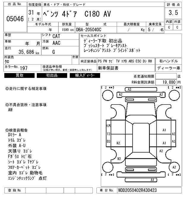 MERCEDES BENZ C CLASS 2019 г., лот № 5046