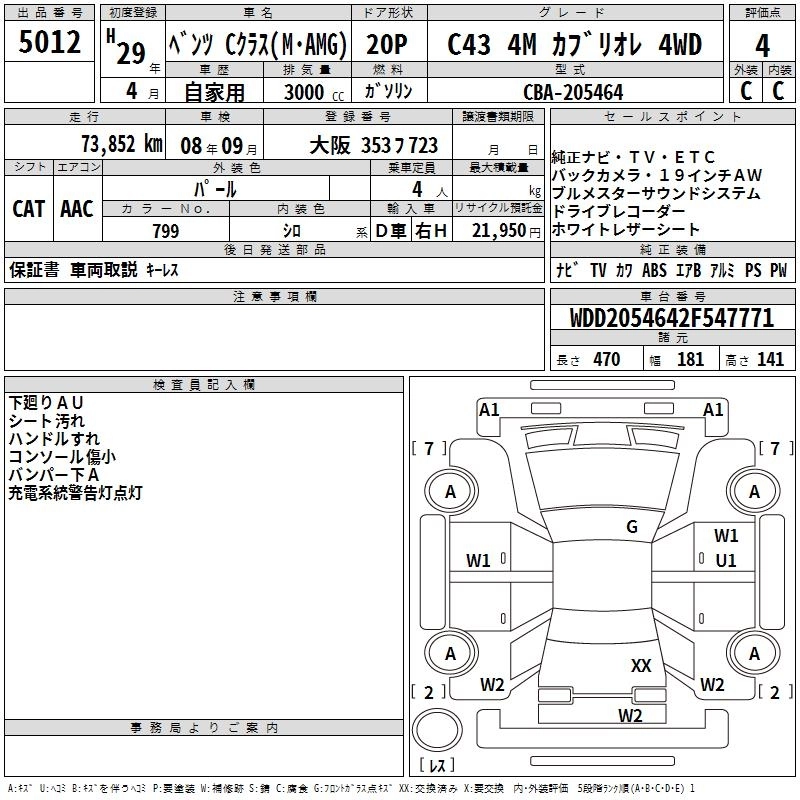 MERCEDES BENZ C CLASS 2017 г., лот № 5012
