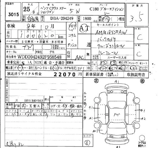 MERCEDES BENZ C CLASS 2013 г., лот № 3015