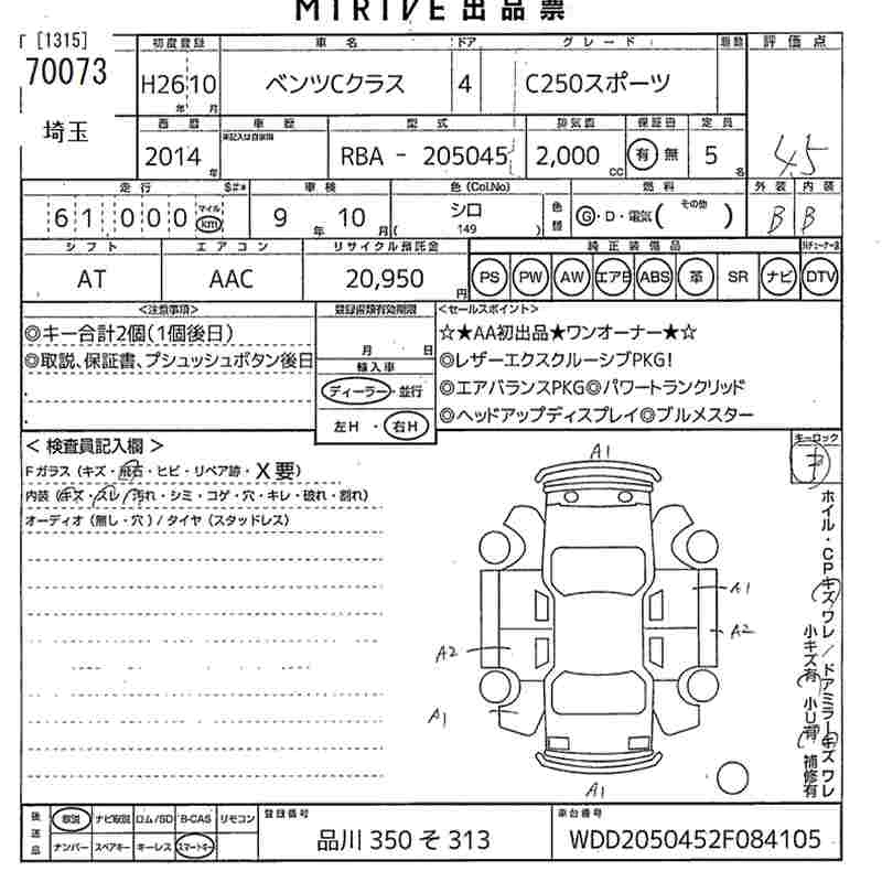 MERCEDES BENZ C CLASS 2014 г., лот № 70073