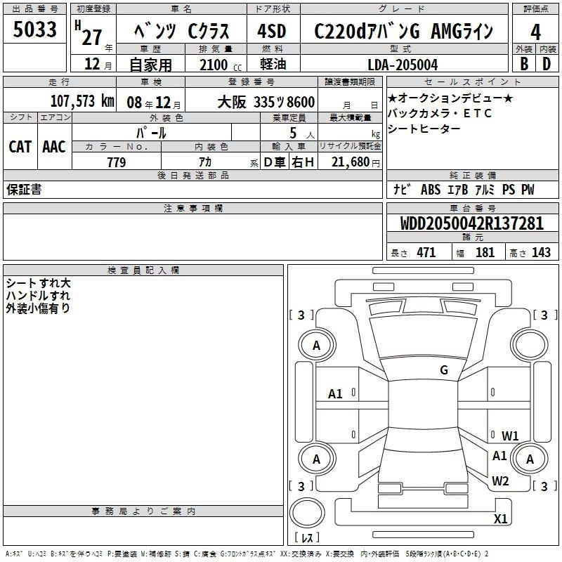 MERCEDES BENZ C CLASS 2015 г., лот № 5033
