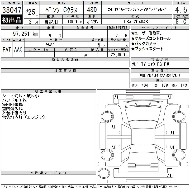 MERCEDES BENZ C CLASS 2013 г., лот № 38047