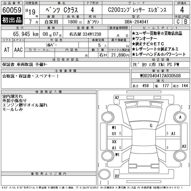 MERCEDES BENZ C CLASS 2007 г., лот № 60059