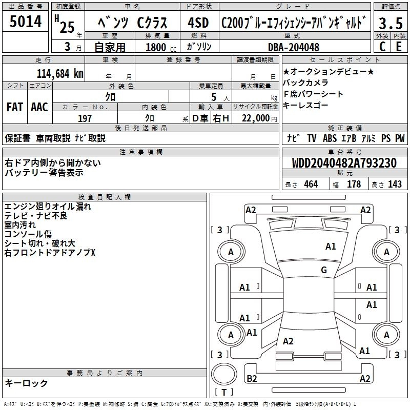 MERCEDES BENZ C CLASS 2013 г., лот № 5014