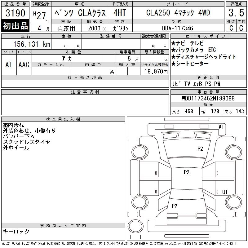Год выпуска2015 Пробег 156 000 км Кузов117346 КомплектацияCLA250 4 MATIC 4WD