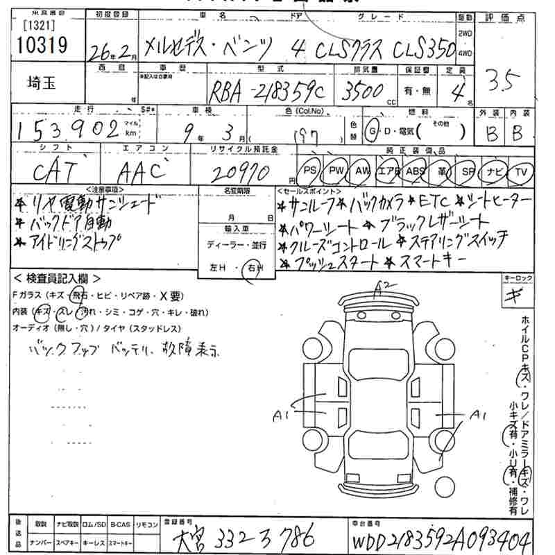 MERCEDES BENZ CLS CLASS 2014 г., лот № 10319