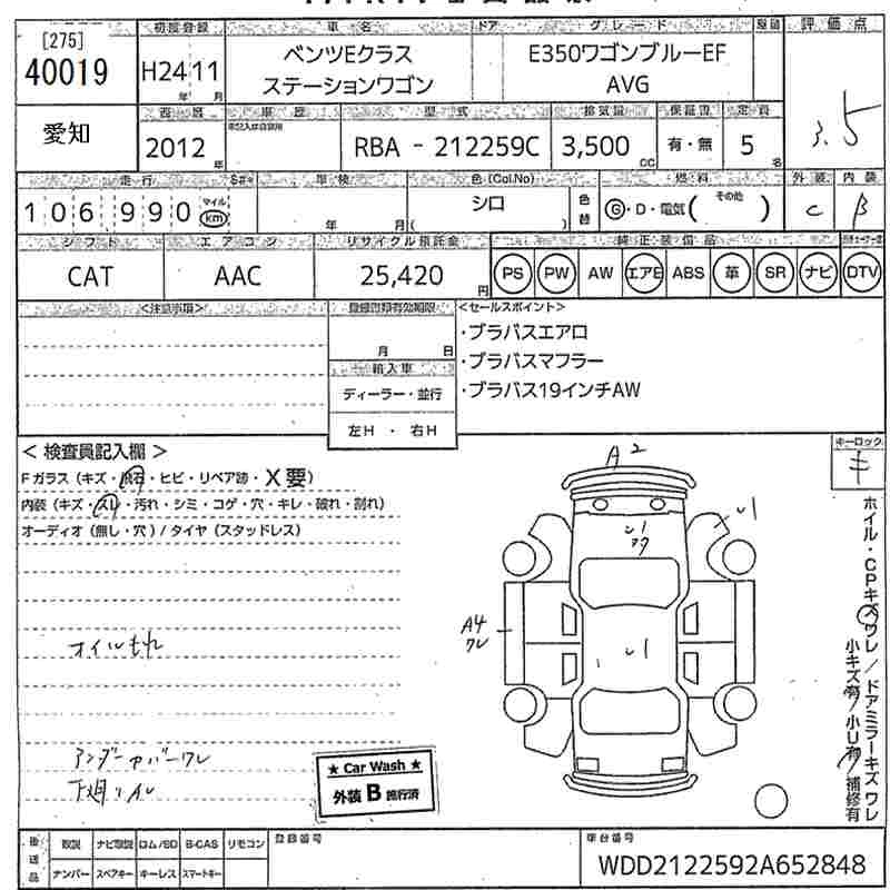 Год выпуска2012 Пробег 107 000 км Кузов212259C КомплектацияE350 WAGON BLUE EF_AVG