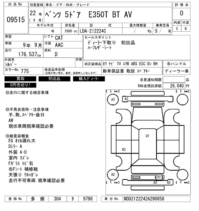 Статус продан Лот 9515 Аукцион ARAI Bayside Дата аукциона 23.01.2026