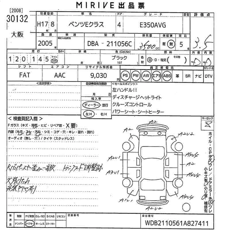 MERCEDES BENZ E CLASS 2005 г., лот № 30132