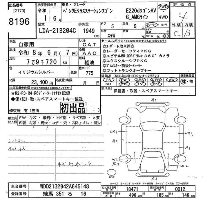 MERCEDES BENZ E CLASS 2019 г., лот № 8196