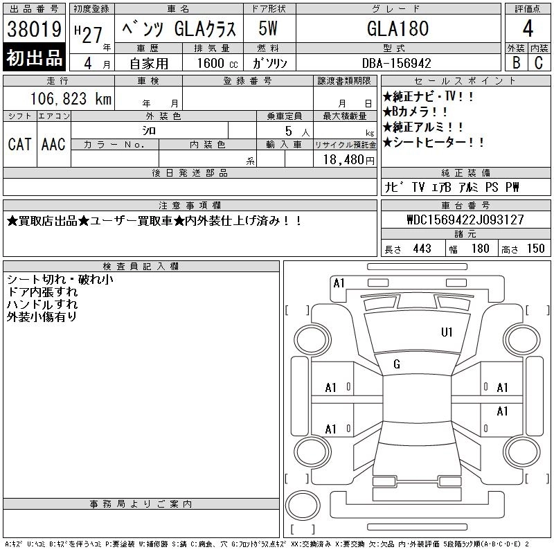 MERCEDES BENZ GLA 2015 г., лот № 38019