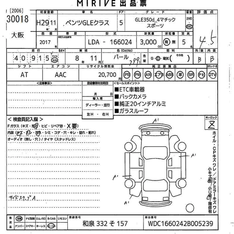 MERCEDES BENZ GLE 2017 г., лот № 30018