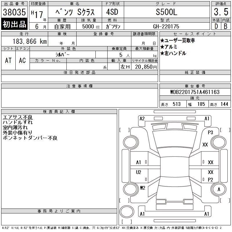 MERCEDES BENZ S CLASS 2005 г., лот № 38035