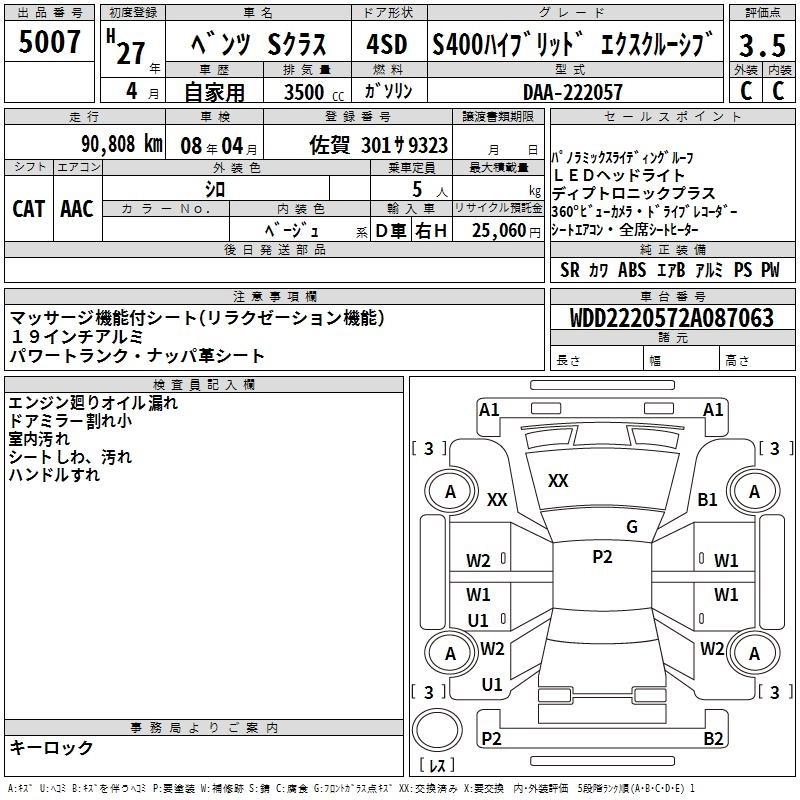 Год выпуска2015 Пробег 91 000 км Кузов222057 КомплектацияS400 HV EXCLUSIVE