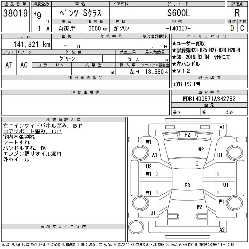 MERCEDES BENZ S CLASS 1997 г., лот № 38019