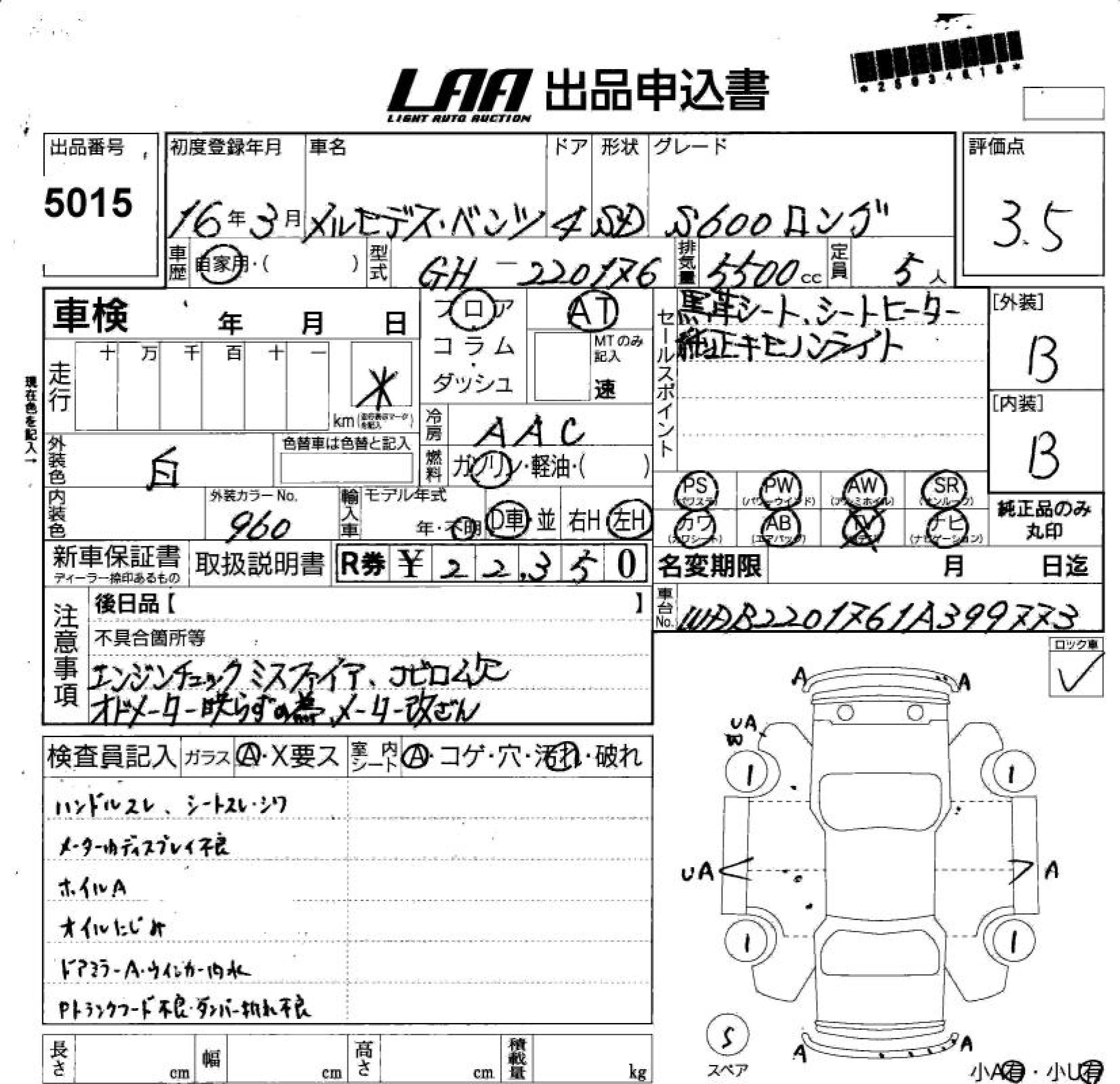 Статус выставлен на аукцион Лот 5015 Аукцион LAA Shikoku Дата аукциона 11.03.2026