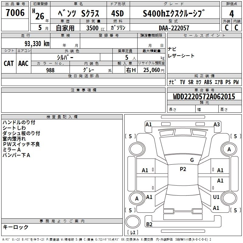 Год выпуска2014 Пробег 93 000 км Кузов222057 КомплектацияS400H EXCLUSIVE