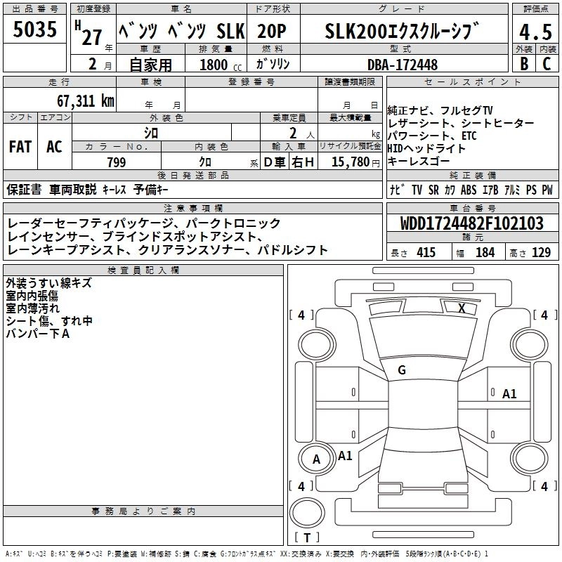 Год выпуска2015 Пробег 67 000 км Кузов172448 КомплектацияSLK200 EXCLUSIVE