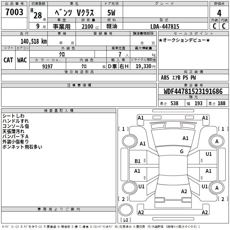 MERCEDES BENZ V CLASS 2016 г., лот № 7003