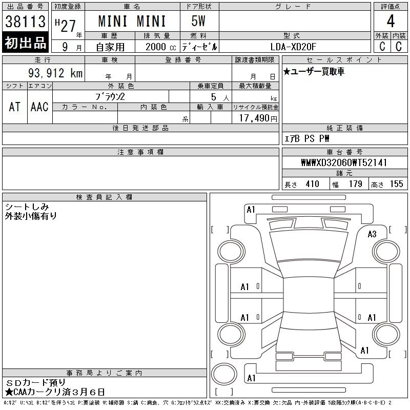 Статус выставлен на аукцион Лот 38113 Аукцион CAA Chubu Дата аукциона 11.03.2026