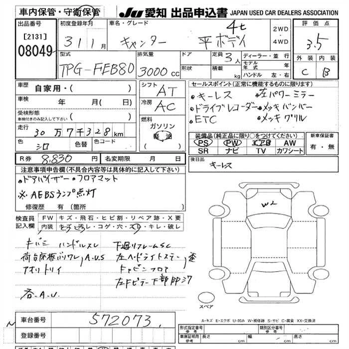 Статус выставлен на аукцион Лот 8049 Аукцион JU Aichi Дата аукциона 23.10.2025