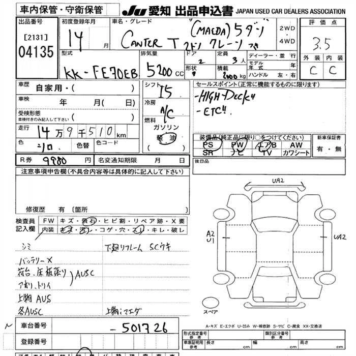 Год выпуска2002 Пробег 150 000 км КузовFE70EB Комплектация5 STEPS CRANE EXIST 2T