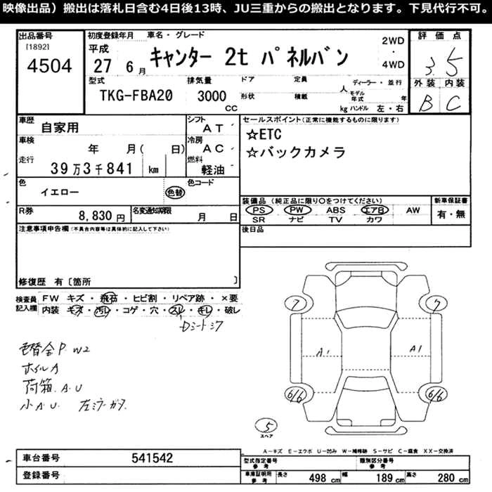 MITSUBISHI CANTER 2015 г., лот № 4504