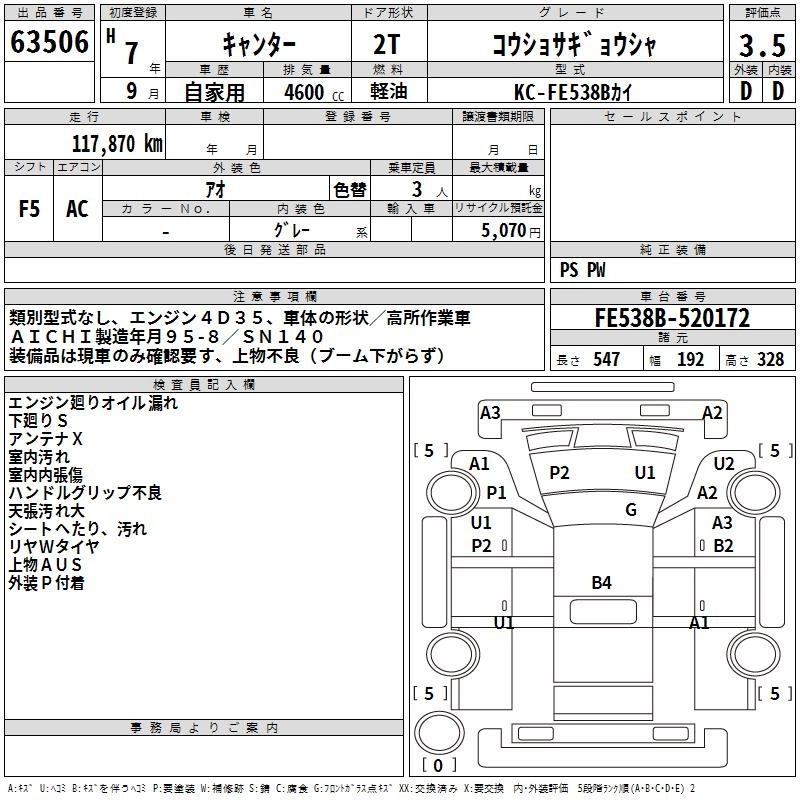 Год выпуска1995 Пробег 118 000 км КузовFE538B Комплектация HIGH PLACE OPERATION CAR