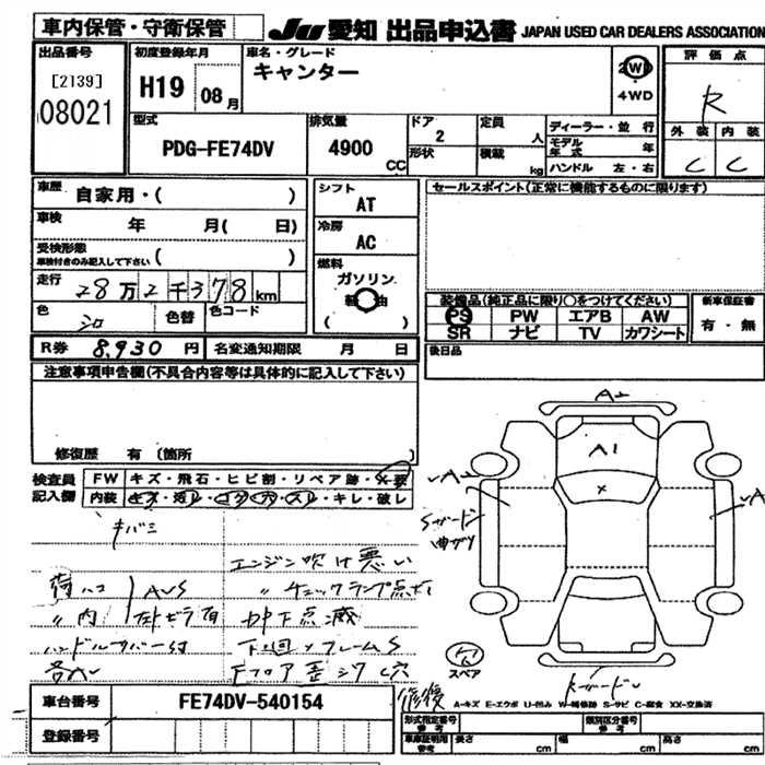Статус выставлен на аукцион Лот 8021 Аукцион JU Aichi Дата аукциона 18.12.2025