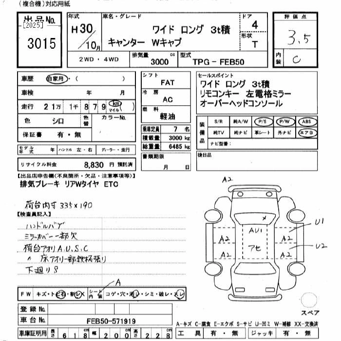 Год выпуска2018 Пробег 211 000 км КузовFEB50 Комплектация WIDE LONG 3T W CAB