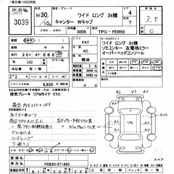Год выпуска2018 Пробег 204 000 км КузовFEB50 Комплектация WIDE LONG 3T W CAB