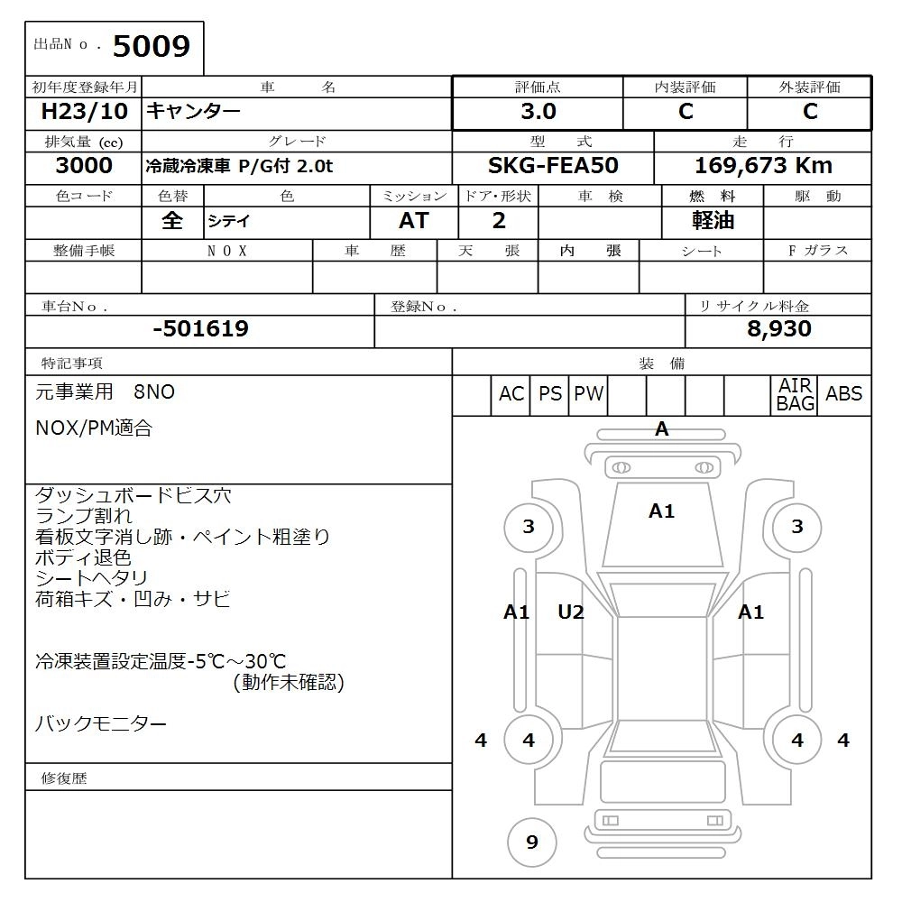 Статус продан Лот 5009 Аукцион Nissan Osaka Дата аукциона 09.03.2026