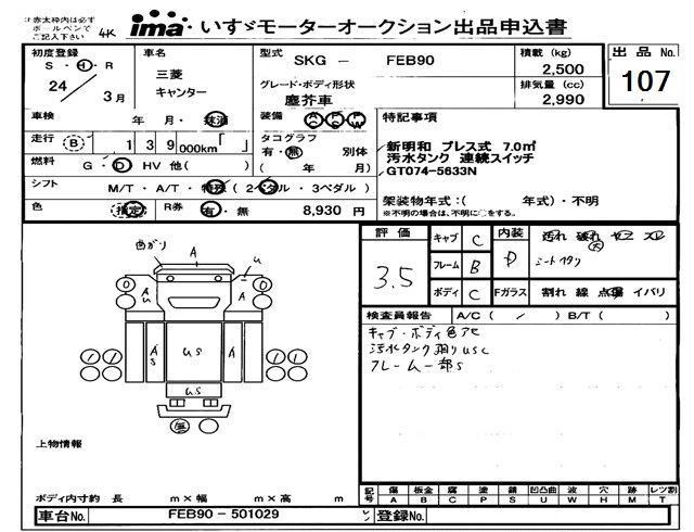 Статус выставлен на аукцион Лот 107 Аукцион Isuzu Tokyo Дата аукциона 11.03.2026
