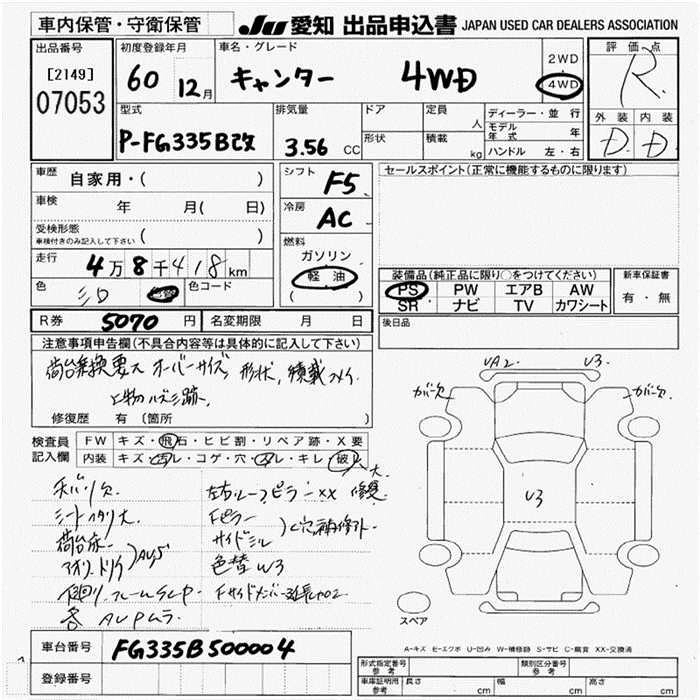 Статус выставлен на аукцион Лот 7053 Аукцион JU Aichi Дата аукциона 12.03.2026