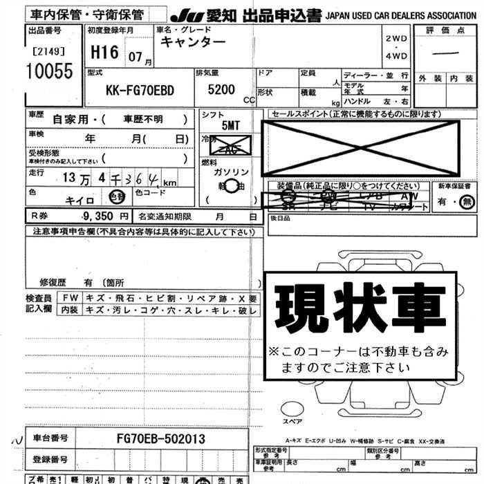 Статус выставлен на аукцион Лот 10055 Аукцион JU Aichi Дата аукциона 12.03.2026