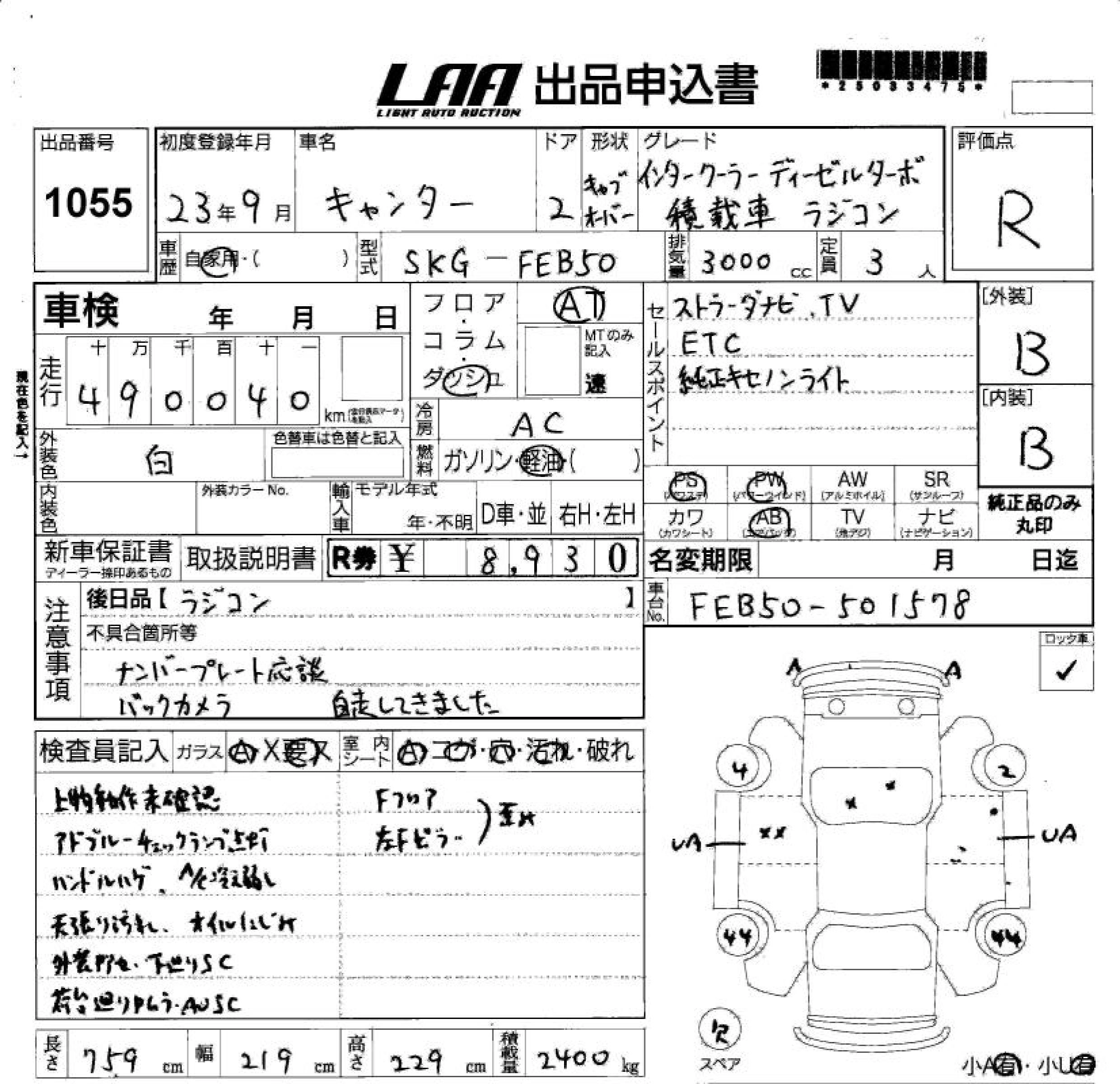 490 000 км КузовFEB50 Комплектация LOADING CAR IC/D-TB RADIO-CONTROLLER KO