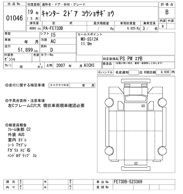 Статус не продан Лот 1046 Аукцион ARAI Oyama VT Дата аукциона 14.03.2026