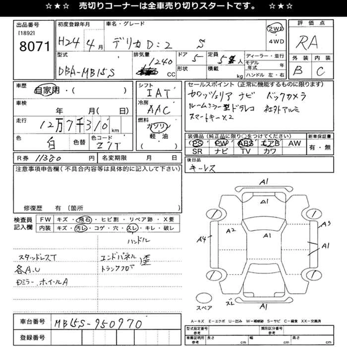 MITSUBISHI DELICA D:2 2012 г., лот № 8071