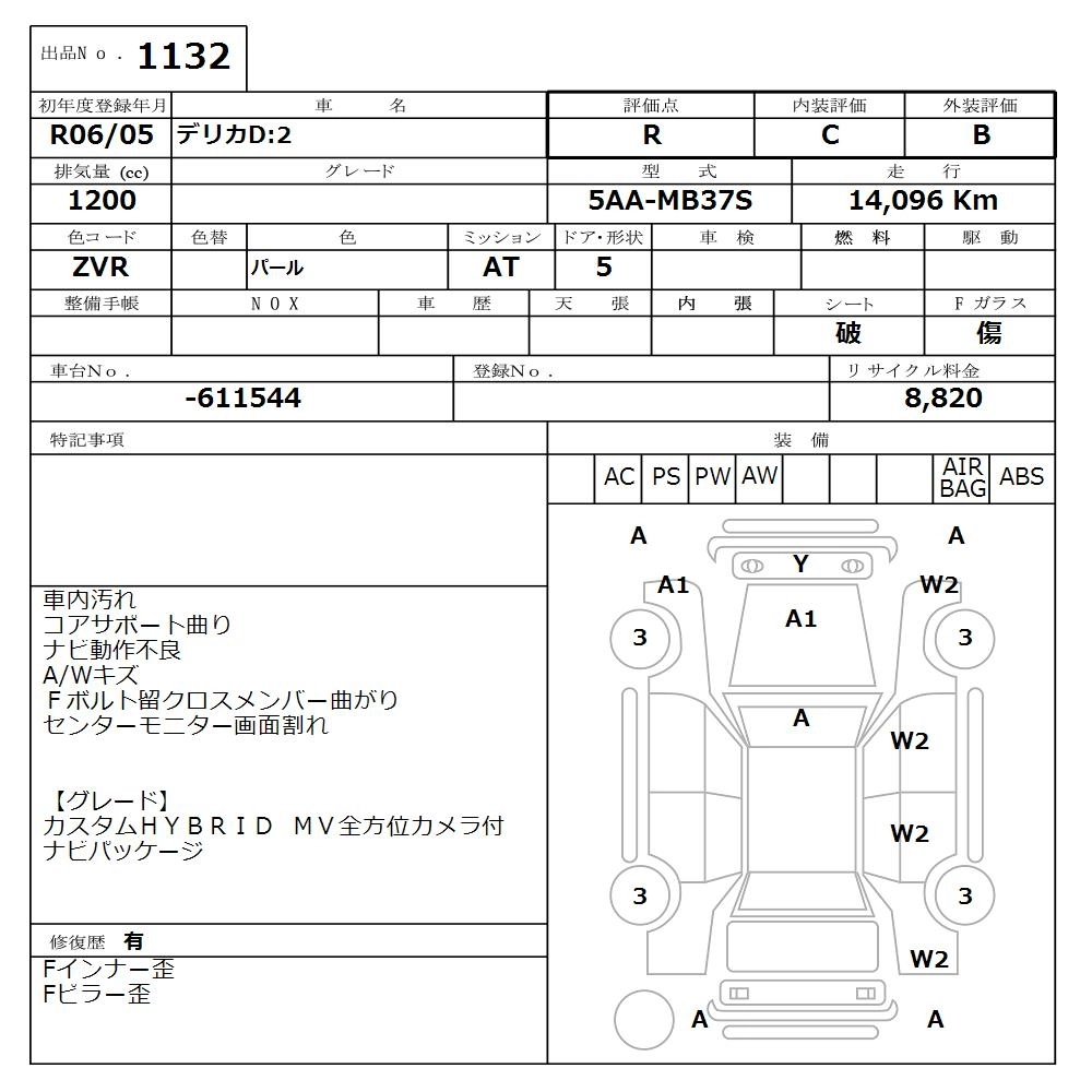 Статус продан Лот 1132 Аукцион Nissan Osaka Дата аукциона 08.12.2025