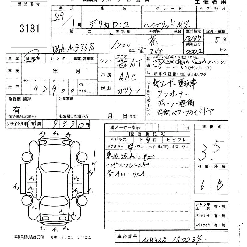 MITSUBISHI DELICA D:2 2017 г., лот № 3181