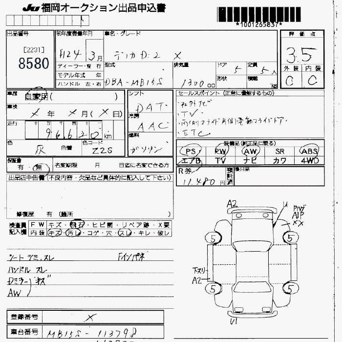 Статус продан Лот 8580 Аукцион JU Fukuoka Дата аукциона 23.01.2026
