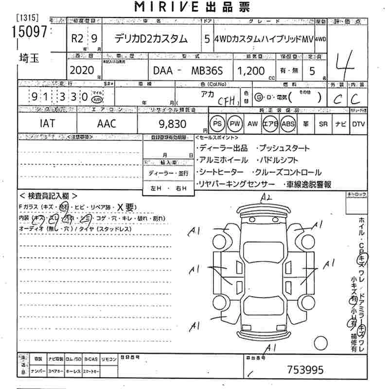 Статус выставлен на аукцион Лот 15097 Аукцион MIRIVE Saitama Дата аукциона 28.01.2026